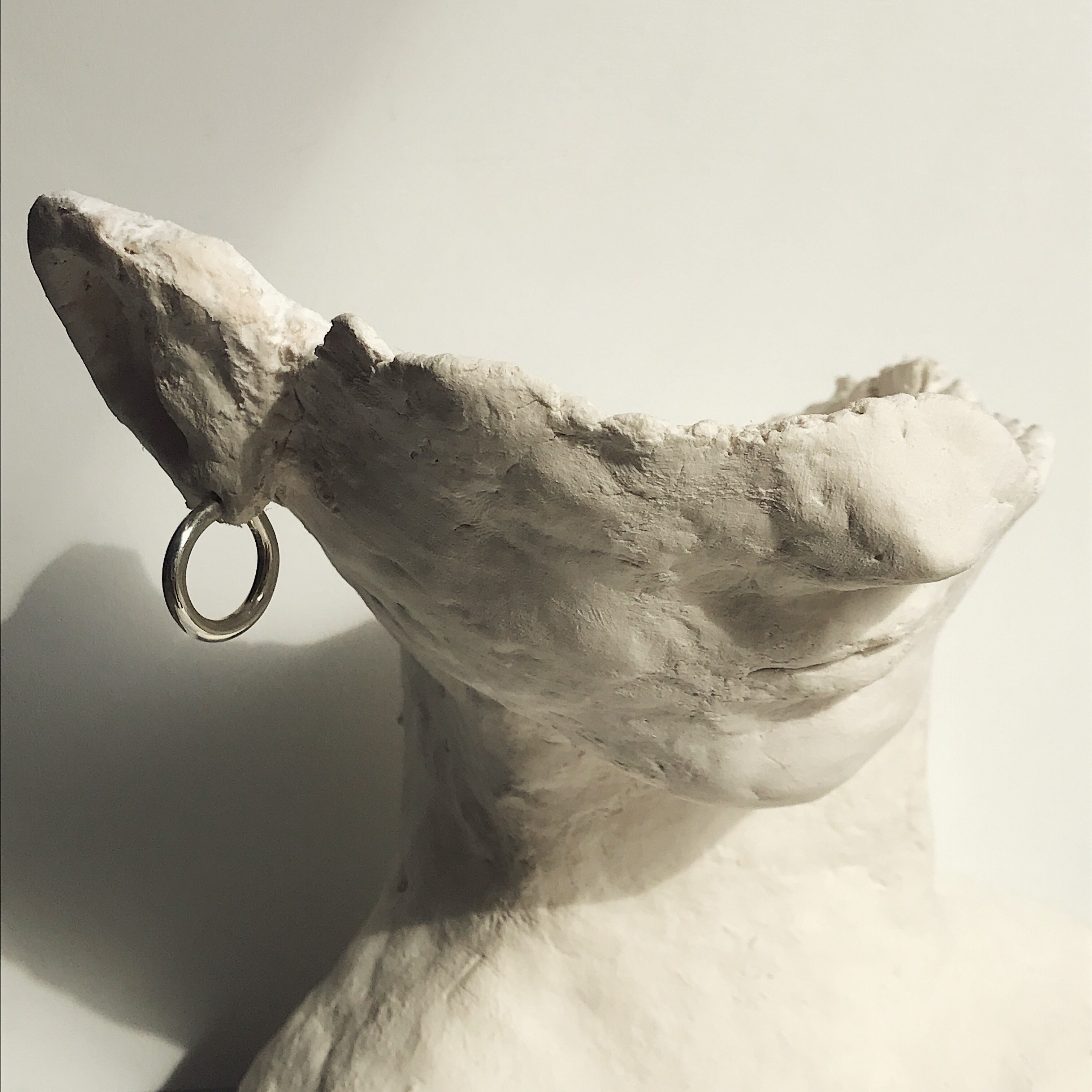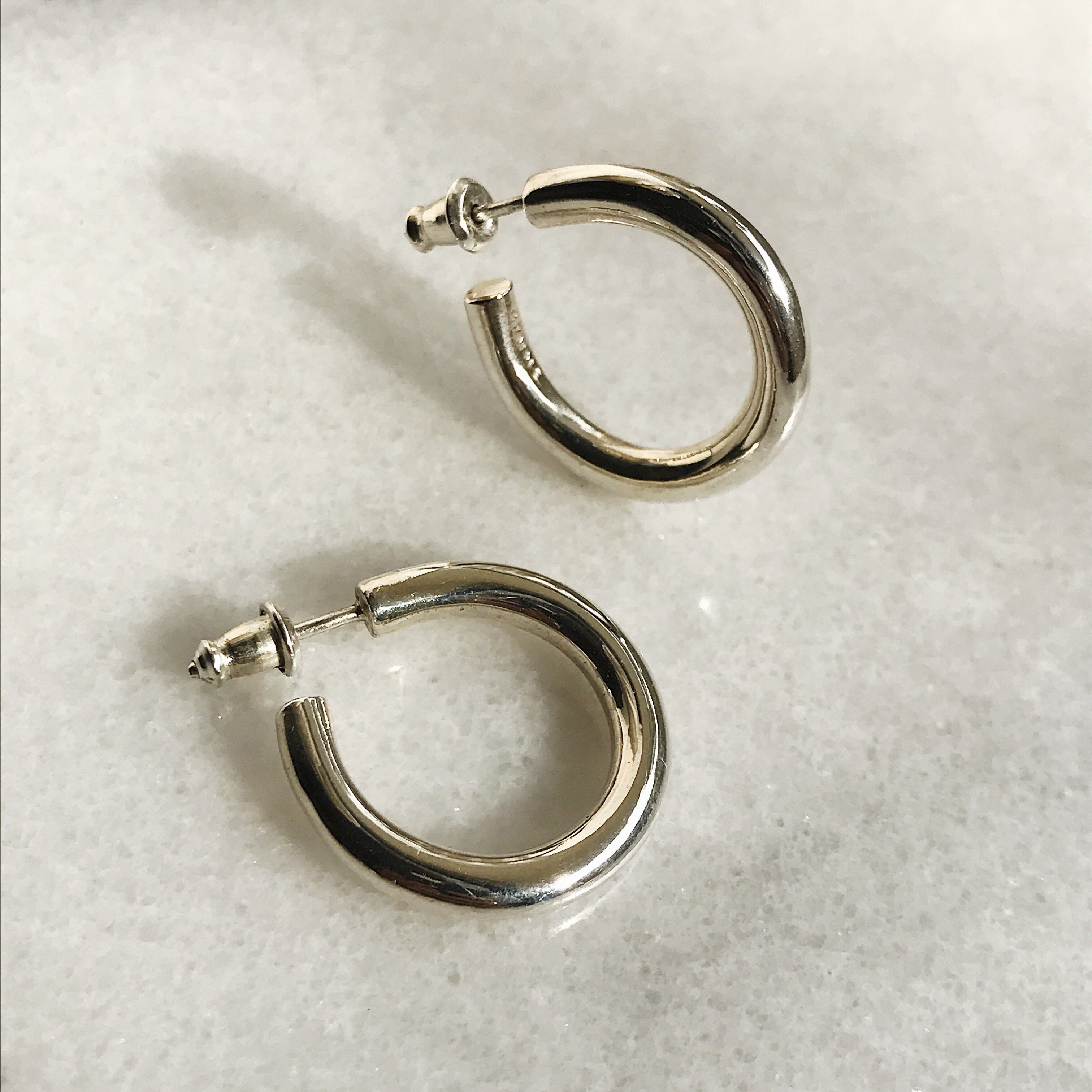ベーシックなピアスですが、正面から見た時にバックまでフープがあるように見える設計です。